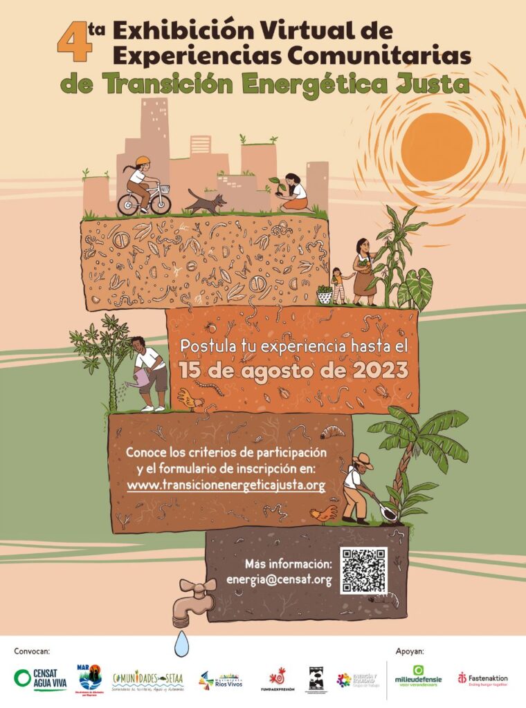 ¡Ya está abierta la convocatoria para participar en la 4ta Exhibición virtual de experiencias comunitarias para la transición energética justa (TEJ)! Postula tu experiencia hasta el 15 de agosto del 2023.